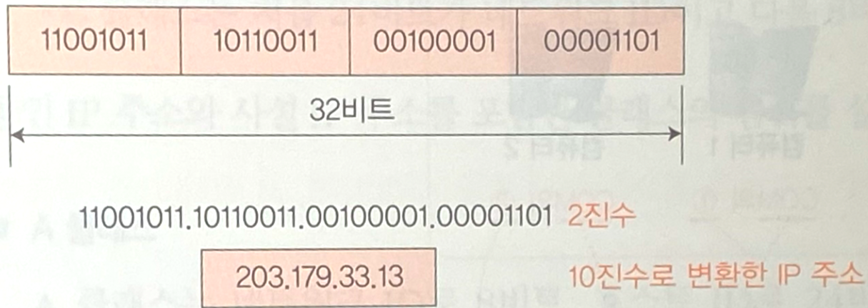 - 2진수 32비트를 8비트 4개로 나눠서 10진수로 표시한다.