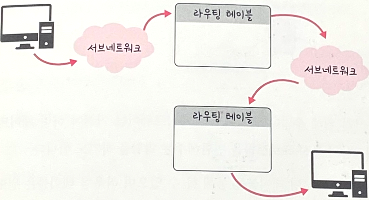 - 패킷이 IP주소를 찾아가는 과정을 라우팅이라고 하고, 라우팅 테이블을 참조하면서 최종 목적지에 도달하게 된다.