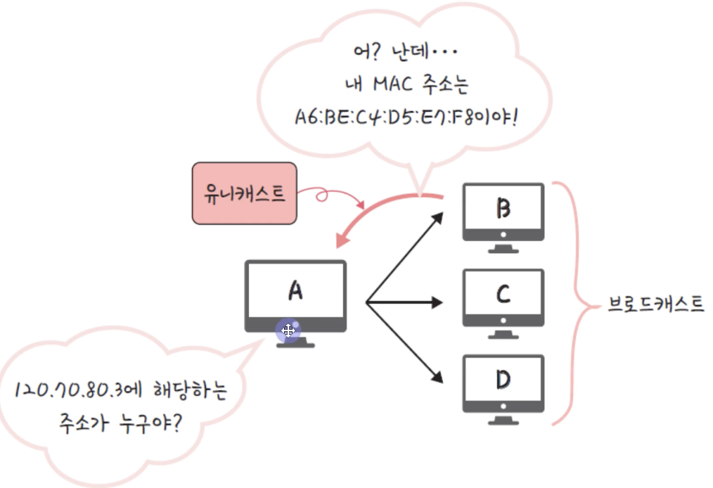 - 패킷이 목적지로 도착하려면 최종적으로 MAC 주소가 필요하다.
