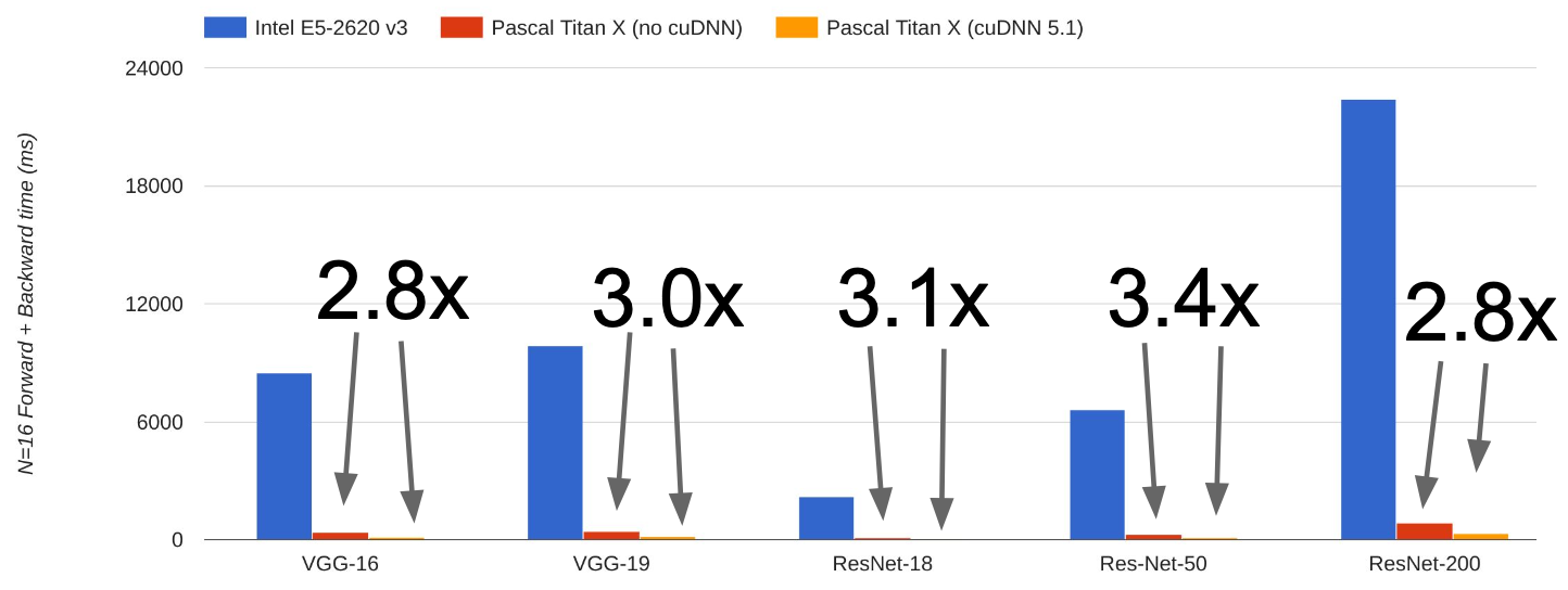 아래 그래프를 보면 cuDNN을 사용할 때의 성능이 최적화되지 않은 CUDA를 사용할 때보다 약 3배정도 좋음을 알 수 있다.