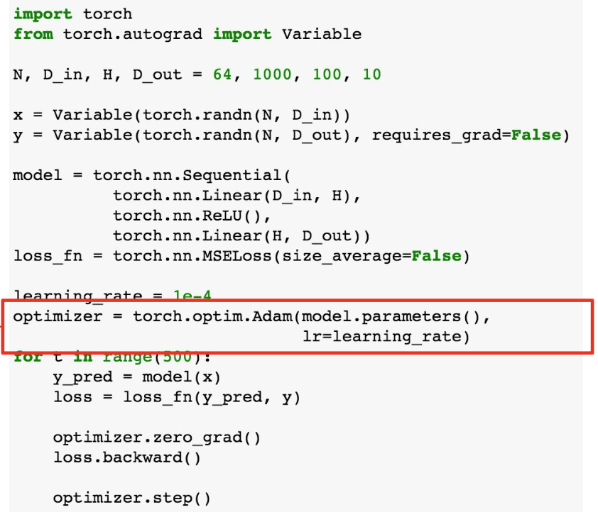 아래 코드처럼 torch.optim을 사용하면 된다.