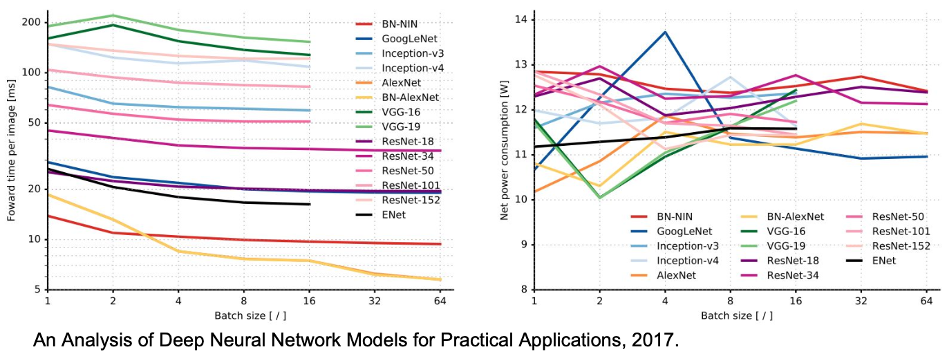 전력 소비량은 배치 사이즈가 어느정도 커지면 GoogLeNet이 가장 작다.