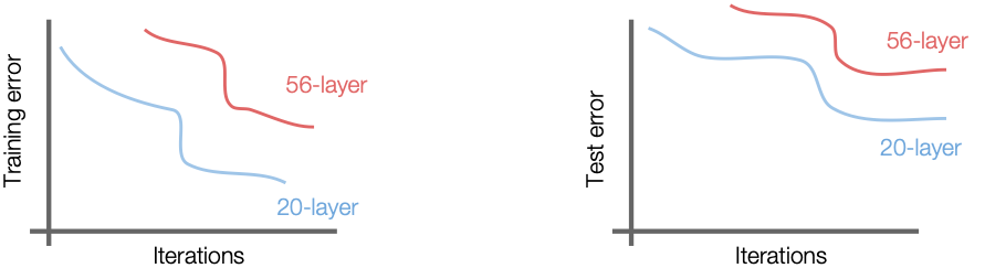 - Plain layer에서는 레이어가 깊어질수록 train error와 test error가 높게 나타난다는 문제가 있었다.