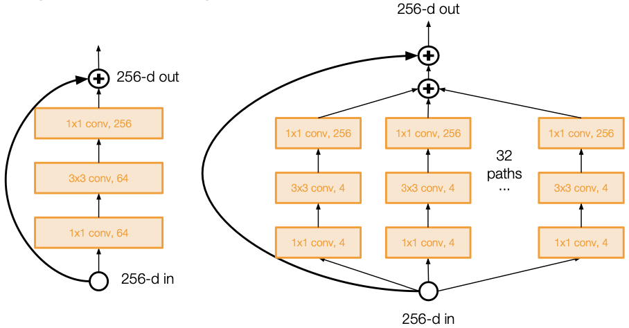 - ResNeXT는 ResNet 논문 저자들의 후속 연구이다.